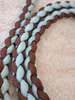 犬のカフェリード パラコード4mmコード使用 ミントとブラウンの四つ編みカフェリード 小さな子でも重くないよう、小型犬用のナスカンを使用 10キロ以下の子まで使用可能 持ち手にした時、全長約120cm 四つ編み部分⇒約9mm 重さ85g(多少の誤差あり) シンプルな四つ編みではあるが、チョコミントアイスを思わせる 可愛らしい色合いです 汚れたら水洗い可能(洗濯機&乾燥機は不可、手洗いでお願いいたします) パラコードの性質上、焼き止めがあります 使用している間等、焼き止めが外れることがありますが ライターで外れたところを炙っていただき、ちょっとドロッ!とした時に 火傷を気を付けスプーン等で押し当てていただくとくっつきます 愛犬が噛み噛みしてしまうと切れてしまうので、噛み噛みしないよう 注意しながらのご使用お願いいたします