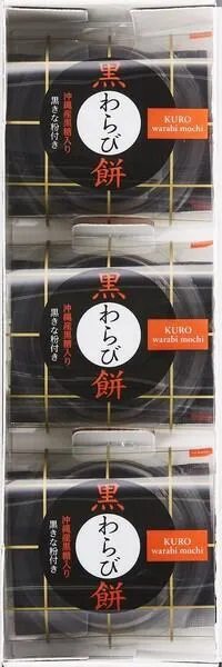 まろやかな黒糖の風味広がる『もっちり ぷるん』とした黒わらび餅。 香ばしい黒きな粉との出会いが、美味しさを引き立てます。 【内容】 黒わらび餅 89g×3個 黒きな粉  3.5g×3個 【必ずご確認下さい】 ※メーカー直送のみの対応となります。(送料込み・1ケースから直送可能) ※<中島大祥堂・直送商品>のみでご注文をお願いいたします。<中島大祥堂・直送商品>以外の商品との混載発注は出来ません。 ※北海道・沖縄離島等には発送が出来ません。ご了承ください。 ※通常、ご注文を頂いてから1週間程度でのお届けですが、大型連休・年末年始または天候の影響により1週間以上かかる可能性がございます。その際は、改めてご連絡いたします。 ※包装紙なし