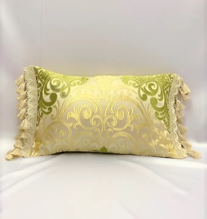 ・華やかな金糸と鮮やかなグリーンの糸が織り込まれた、密度の高い折柄が特徴の高級クッションカバー。置くだけで華やかな雰囲気に…