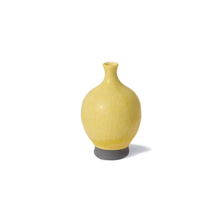 ころんとした丸い形がかわいらしいフラワーベースです。 マットな質感の黄色は、食卓にはもちろん、玄関や窓際やキッチンにも置きやすく彩りをプラスしてくれます。 一輪挿しとして使っても、2~3本程のアレンジでもまとまります。庭に咲いた花やグリーンなど気軽に草花を生けられます。