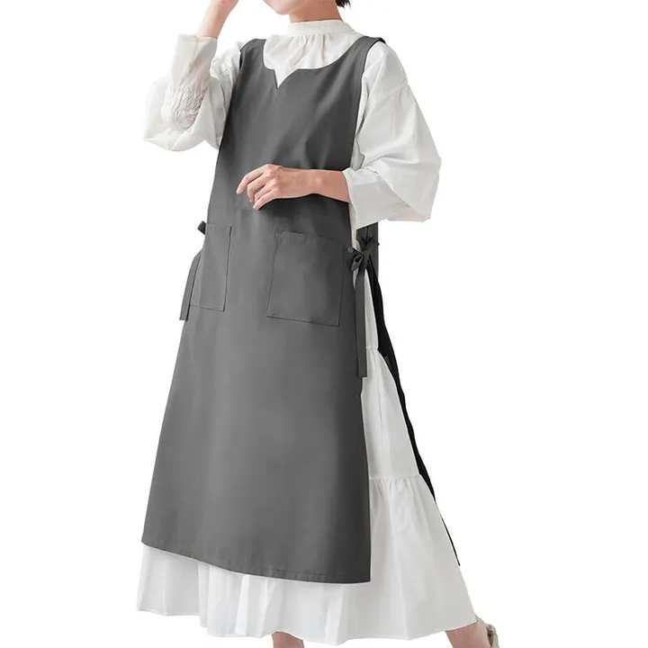1度リボンを結べば、後はボタンを留めるだけで着脱可能◎ 両サイドのリボンは外せるので横から簡単に着られます。 その日のコーデや気分に合わせて結び方を調整。 ゆったり着たい・・・など理想のシルエットをお選びいただけます♪ お尻周りが隠れるデザインで体型をカバー。 キーネックの襟元で甘すぎないキレイめな印象に。 シワになりにくく、乾きやすい素材なので機能性もばっちりです◎