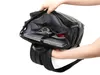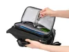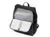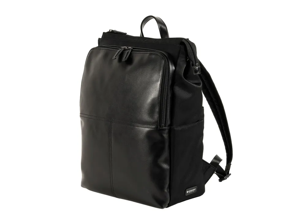 女性のプロフェッショナルな装いにふさわしい、シンプルなデザインと上質な素材使いでシックにまとめ上げたバックパック。 洗練された雰囲気でありながら、機能性に溢れたこのバックパックは、毎日のビジネスシーンで使える優れたアイテムです。 上質なレザーがスーツにも似合う洗練された印象を与えつつも、メイン素材に軽量ナイロンツイル(撥水加工)を使用し、軽さにもこだわりました。荷物が重くなってしまうことの多いビジネスシーンでの使用にもぴったりです。 大容量のメインスペースの背面に配した13インチまでのPC用のポケットには、大きさに合わせて自由に長さを変えることのできるストラップが付いています。このポケットはバッグを床などに置いた際の衝撃を回避できるよう、ポケットの底がバッグの底まで到達していないため、パソコンやタブレット端末なども安心して持ち運ぶことができます。 また、前面のスペースには書類やステーショナリーなどを賢く収納できる複数のポケットや、背面の財布などを安心して収めることが出来るポケットなど、シンプルな見た目と裏腹に優れた収納力が魅力です。 実用性に優れた充実の収納スペースをスマートに使いこなす、忙しくアクティブな方におすすめの多機能バックパックです。