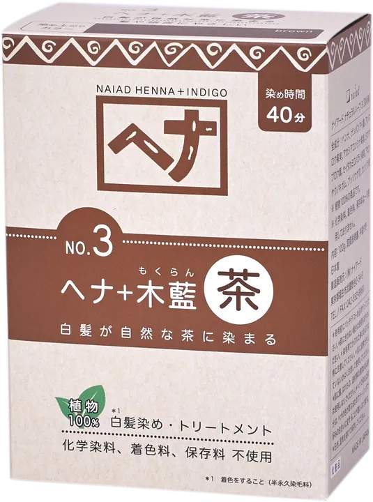 ヘナに木藍を配合して落ち着いた色味に ヘナ+木藍 茶 100g