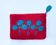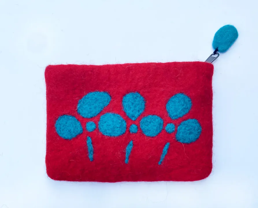 お花の模様のカラフルなフェルトポーチ スクエア 赤にブルーの花