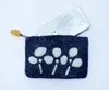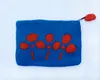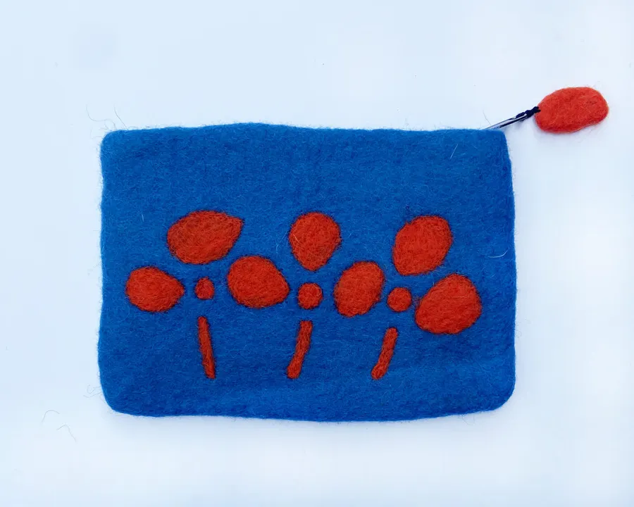 お花の模様のカラフルなフェルトポーチ スクエア ブルーにオレンジの花
