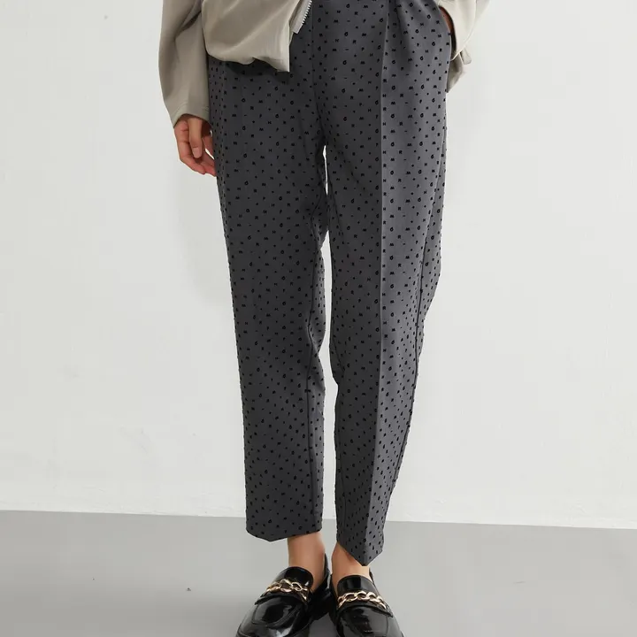 KNGT621・英字フロッキープリントセンタープレステーパードパンツ CHARCOAL-M