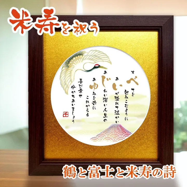 【詩絵(うたえ)】米寿祝い おめでたい鶴と富士山のイラストとポエム 詩 お祝い ギフト 贈り物 プレゼント 88歳 誕生日プレゼント 感謝の言葉 詩入り 金色マット