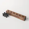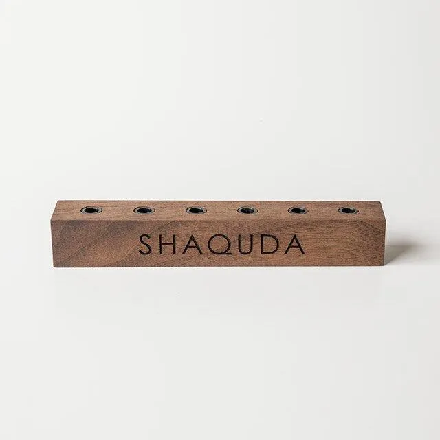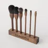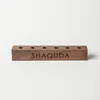 SHAQUDAのメイクブラシを美しく直立収納できる6本用スタンド。天然木のウォールナット素材を使用し、洗練されたデザインに仕上げています。簡単なスペーサーの調整で太さの異なるブラシも収納可能です。