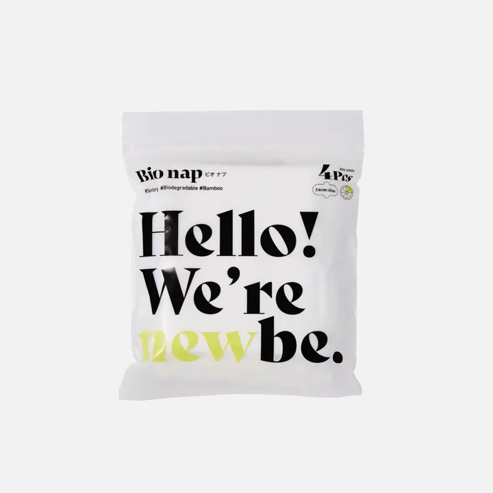 【軽い日~普通の日 昼用スリム24cm羽根つき 4枚入りジップバッグ】 ビオ ナプとは、プラスチックフリーのサニタリーブランド「limerime (ライムライム)」が展開する、「Bio Bamboo (天然の竹))「Bio Film (植物由来のフィルム))「Bio degradable(生分解性)」という3つのビオに由来する新たなサニタリー用品です。 1960年代に日本で初めて発売された紙製の使い捨てタイプから、利便性や機能性を重視し進化を遂げてきたサニタリーナプキンですが、時代の流れとともに環境配慮という新たな価値が注目されています。 ライムライムは明るい未来のために、地球にもからだにも優しい選択としてビオ ナプを提案します。 外装のジップバッグについても、トウモロコシ由来のPLAを採用した生分解性の素材で作られています。そのままでもカバンに入れて持ち運べるスタイリッシュなデザインが特徴です。 【商品特長】 ■からだに優しい 1)肌ざわり 竹素材はシルクのようにキメが細かくなめらか。圧倒的にソフトな肌ざわりで刺激が少なく、敏感肌や乾燥肌にもおすすめです。 2)機能性 竹素材は、コットンよりも吸湿性に優れ通気性も高いのでムレ防止に効果的です。 また、抗菌・防臭効果を備え不快なにおいを軽減するうえ、かゆみやかぶれの原因となる静電気を素早く鎮静化させる制電性を備えています。 3)安全性 吸収体にはウッドパルプを使用し、石油由来の高分子吸収体不使用(ノンポリマー)です。 また、塩素を使わずに漂白することでダイオキシンの発生をおさえ、デリケートゾーンを化学物質や香料などの刺激から守ります。 ■地球に優しい 1)生分解性 パッケージを含め97-99%生分解性、土にかえる素材でつくられているため、燃焼時のCO2排出量を大幅に削減します。なぜなら、竹繊維のトップシートやとうもろこし由来のPLAを使ったフィルムなど植物由来の素材は、高分子吸収体によって水分をためこんだプラスチック素材と比較すると低温焼却が可能だからです。 ※一般的なナプキンは1枚当たりレジ袋4枚分(約2g)相当のプラスチックが含まれています。廃棄後に大量のプラスチックゴミとなるため環境問題の一因となっています。 2)短期間で成長・再生するカーボンニュートラルな竹 竹は多量の二酸化炭素を吸収するカーボンニュートラルな素材です。また自生力が非常に高く、短期間で大きく成長する竹は栽培過程においても環境負荷が少なく、繰り返し収穫することができるサステナブルな資源です。管理システムや加工技術に長けている中国四川省にてFSC(森林管理協議会)管理のもと栽培された竹を使用しています。