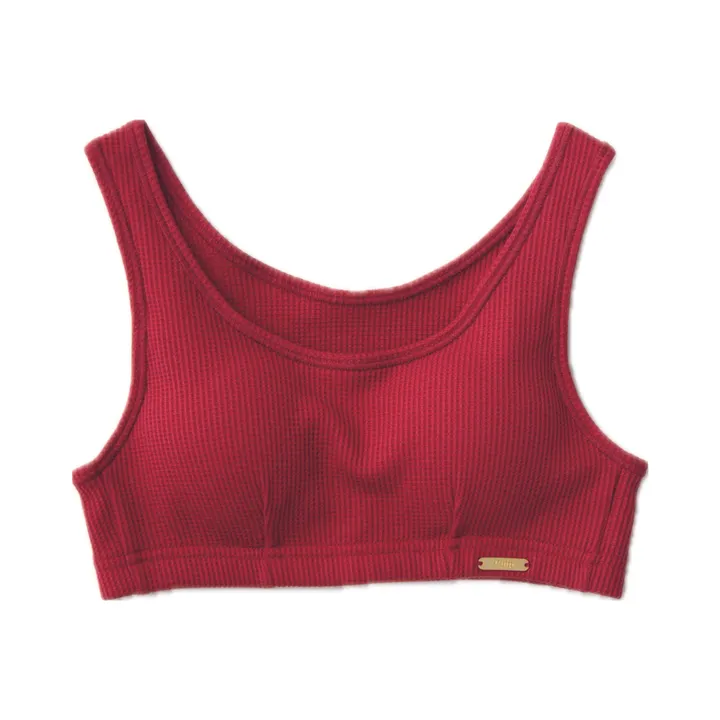お休みの日や家でゆっくりとしたい時にぴったりなハーフトップ。 締め付けが少なく、ゆるっと楽に着られるので、身体をリラックスさせて過ごすことができます。 Cuip ズボパンと合わせて、ルームウェアとしてご利用ください。 胸元がしっかり隠れ、肩紐部分も太めのデザインになっているので、くいこみにくく、安定感のある着心地に。 パッドは取り外し可能なので、お好みのものとの入れ替え、自分にフィットしやすく着られます。 身生地に使用している生地は、ワッフルのようにマス目状の凸凹のある生地で、やわらかく、身体を包み込んでくれるような優しい肌触りです。
