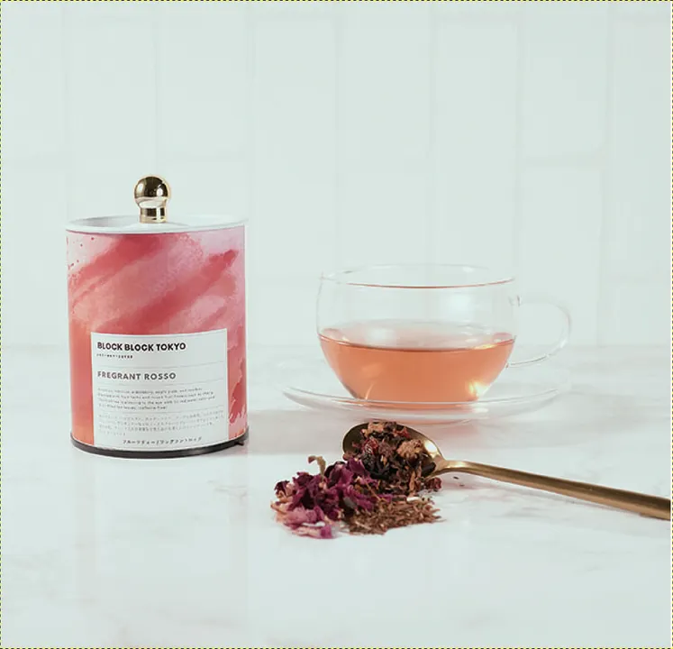 BLOCK BLOCK TOKYOにチーズケーキ好きに送る紅茶(フレグラントロッソ)が新登場。 チーズ好きのチーズ好きによるチーズ好きのための紅茶(フレグラントロッソ)。ローズヒップ、ハイビスカス、エルダーベリー、アップル果肉、ルイボスなどのフルーツハーブとチェリーなどのミックスフルーツフレーバーをブレンドしました。赤い水色、フルーツ入りの茶葉など見た目にも楽しいフルーツティーです。チーズケーキ専門店として紅茶(フレグラントロッソ)とのくみあわせておすすめが、バスクチーズケーキBB(ブルー)です。フルーツティの酸味とブルーチーズの酸味の相性が抜群です。一緒に召し上がった後の酸味から甘みへの変化をお楽しみください。BLOCK BLOCK TOKYOのおすすめ品。是非ご賞味ください。