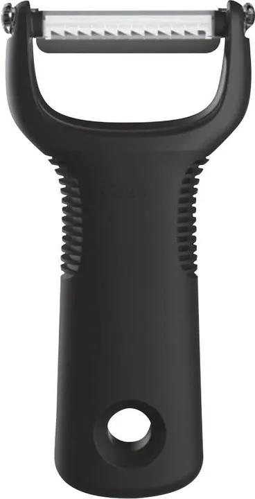 野菜の千切りに最適なのが、この千切りピーラーです。ステンレススチールの刃で、にんじんやジャガイモ等の千切りをすることができます。仕上がりはやや太めの千切りなので、食感を残したいサラダやキンピラごぼうなどにも最適です。 ハンドルは濡れた手でもすべりにくい、柔らかくて手になじみやすいグリップで快適にお使いいただけます。側面のフィンが指の力を吸収してくれるので、長時間使用しても疲れにくく、効率的に千切りができます。千切りする食材をまな板に固定して使用します。 漂白剤はご使用いただけません。食器洗い乾燥機(低温設定)がご使用いただけます。