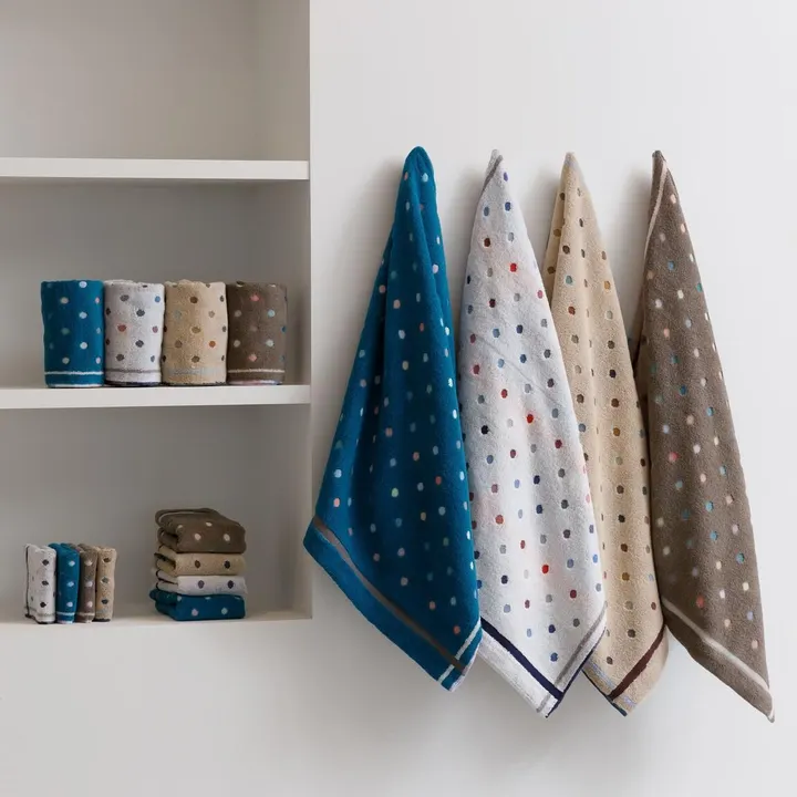 【今治の大人可愛いハンカチ】多色ドット柄 オプス ふわふわとした両面無撚糸の柔らかな肌触りで、軽量ながらボリューム感があり吸水性も抜群です。 色彩豊かなドットデザインで、手に取るだけで楽しい気分になります。 落ち着いたトーンのカラーバリエーションなので、世代問わず使いやすいタオルです。 今治ブランド認定商品で、吸水性や毛羽落ち試験など厳しい基準をクリアした製品です。 ※JANシールの発行を希望される場合は、ご注文の際にメッセージをお願いいたします。