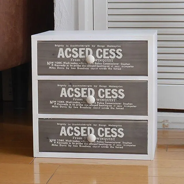 北海道 旭川市の自社工場で製作しています アンティーク風の仕上げがオシャレな 3段引き出し小物入れ ひとつひとつ手作業でアンティーク加工をしているため 色あいやかすれ具合などには個体差があります ■商品サイズ 本体外寸   約 横幅270×奥行210×高さ290mm 引き出し内寸 約 横幅230×奥行182×高さ72mm (板により多少の誤差が出る場合があります) ■材質 合板を使用 木目、色合いなどが1つ1つ違います
