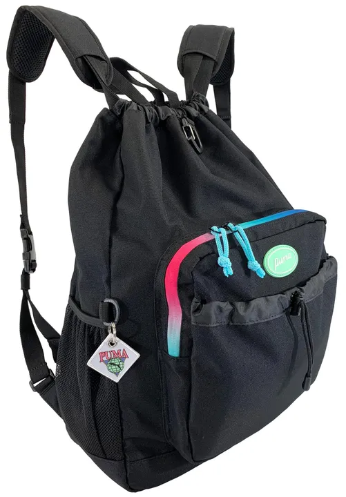 ショルダーバッドは取外し可能。 オリジナルチャーム付き。 外ファスナーポケット、オープンポケット付き。 内装オープンポケット付き。 メッシュポケット2個付き。