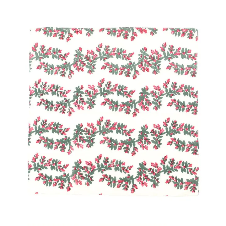 ハンカチとして使うだけじゃなく、ギフトのラッピングとして使うのもおすすめ。 ヤドリギ(宿り木)柄をモチーフにしたハンカチ。古くからヨーロッパでは神聖な木とされてきました。クリスマスには宿り木を飾ったり、ヤドリギの下でキスをすると永遠に結ばれるロマンティックな言い伝えもあります。ハンカチとしてはもちろんのこと、お弁当包みやラッピングにつかっても。プレゼントにもおすすめのアイテムです。 素材の情報 ブロックプリントとは、木彫り版でハンコを押すように1柄ずつ1色ずつプリントされたものです。まず、アウトラインとなる柄のスタンプを押していき、その後色を乗せていきます。使われている色の数だけ作業は複雑になっていきます。全て手作業の為、染ムラやスタンプの境目などが少し出ていますが、それがブロックプリントの良さでもあり、風合いとなっております。 営業のひと言 ビビットなカラーは服装のアクセントにもなってくれますので、首に巻いたりポケットから覗かせたり、カゴバッグのカバーにしたりとファッションコーディネートの一部としてお楽しみいただけます。