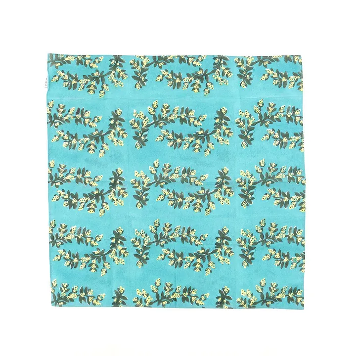 ハンカチとして使うだけじゃなく、ギフトのラッピングとして使うのもおすすめ。 ヤドリギ(宿り木)柄をモチーフにしたハンカチ。古くからヨーロッパでは神聖な木とされてきました。クリスマスには宿り木を飾ったり、ヤドリギの下でキスをすると永遠に結ばれるロマンティックな言い伝えもあります。ハンカチとしてはもちろんのこと、お弁当包みやラッピングにつかっても。プレゼントにもおすすめのアイテムです。 素材の情報 ブロックプリントとは、木彫り版でハンコを押すように1柄ずつ1色ずつプリントされたものです。まず、アウトラインとなる柄のスタンプを押していき、その後色を乗せていきます。使われている色の数だけ作業は複雑になっていきます。全て手作業の為、染ムラやスタンプの境目などが少し出ていますが、それがブロックプリントの良さでもあり、風合いとなっております。 営業のひと言 ビビットなカラーは服装のアクセントにもなってくれますので、首に巻いたりポケットから覗かせたり、カゴバッグのカバーにしたりとファッションコーディネートの一部としてお楽しみいただけます。