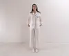 レディース・ リネン100% のオフホワイト椿オイル加工のパジャマ(上下)パイピング黒 L