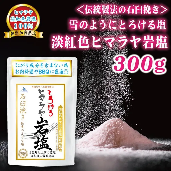 ヒマラヤ岩塩 ピンク 食用 ソルト パウダー 粉末 自然塩 無添加 石臼挽き製法 雪のようにとろける塩 |300g 6個