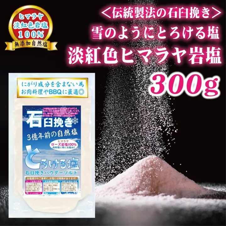 ヒマラヤ岩塩 ピンク 食用 ソルト パウダー 粉末 自然塩 無添加 石臼挽き製法 雪のようにとろける塩 |300g 12個