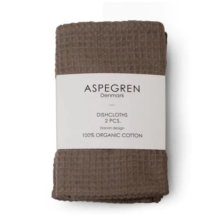 ※ただいま新パッケージに移行中です。写真とパッケージが異なる場合がございます事をご了承ください。 オーガニックコットンのふわふわとしたワッフル地のディッシュクロス。 スモーキーで温かみのある色味で、同色2枚セット商品です。 食器拭きやテーブルふきんとしてはもちろん、お客様がいらした時のお手拭きとしてもおすすめです。 こちらのディッシュクロスにはループが付いていますので、フック等にかければ北欧スタイルキッチンに。 同じシリーズで大判サイズのティータオルもございます。 環境に配慮したAspegrenのディッシュクロスは全て綿100%。プラスチックは使用していません。