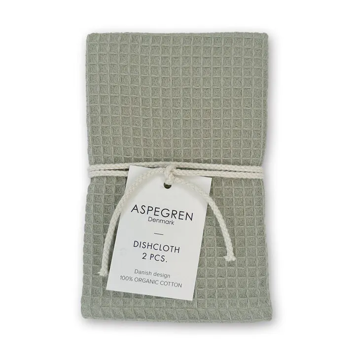 ※ただいま新パッケージに移行中です。写真とパッケージが異なる場合がございます事をご了承ください。 オーガニックコットンのふわふわとしたワッフル地のディッシュクロス。 スモーキーで温かみのある色味で、同色2枚セット商品です。 食器拭きやテーブルふきんとしてはもちろん、お客様がいらした時のお手拭きとしてもおすすめです。 こちらのディッシュクロスにはループが付いていますので、フック等にかければ北欧スタイルキッチンに。 同じシリーズで大判サイズのティータオルもございます。 環境に配慮したAspegrenのディッシュクロスは全て綿100%。プラスチックは使用していません。