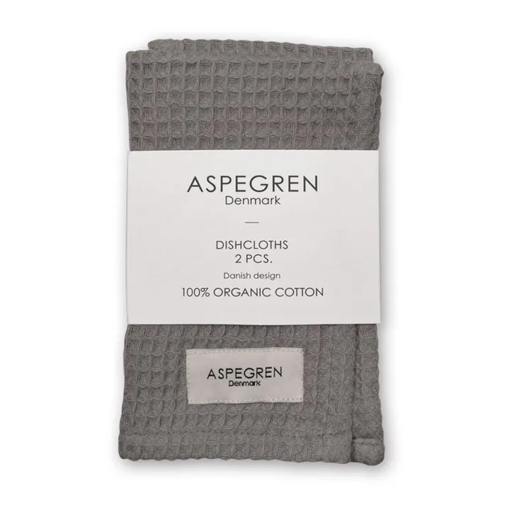 ※ただいま新パッケージに移行中です。写真とパッケージが異なる場合がございます事をご了承ください。 オーガニックコットンのふわふわとしたワッフル地のディッシュクロス。 スモーキーで温かみのある色味で、同色2枚セット商品です。 食器拭きやテーブルふきんとしてはもちろん、お客様がいらした時のお手拭きとしてもおすすめです。 こちらのディッシュクロスにはループが付いていますので、フック等にかければ北欧スタイルキッチンに。 同じシリーズで大判サイズのティータオルもございます。 環境に配慮したAspegrenのディッシュクロスは全て綿100%。プラスチックは使用していません。