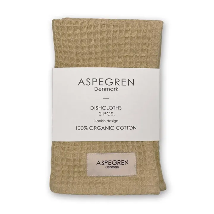 ※ただいま新パッケージに移行中です。写真とパッケージが異なる場合がございます事をご了承ください。 オーガニックコットンのふわふわとしたワッフル地のディッシュクロス。 スモーキーで温かみのある色味で、同色2枚セット商品です。 食器拭きやテーブルふきんとしてはもちろん、お客様がいらした時のお手拭きとしてもおすすめです。 こちらのディッシュクロスにはループが付いていますので、フック等にかければ北欧スタイルキッチンに。 同じシリーズで大判サイズのティータオルもございます。 環境に配慮したAspegrenのディッシュクロスは全て綿100%。プラスチックは使用していません。