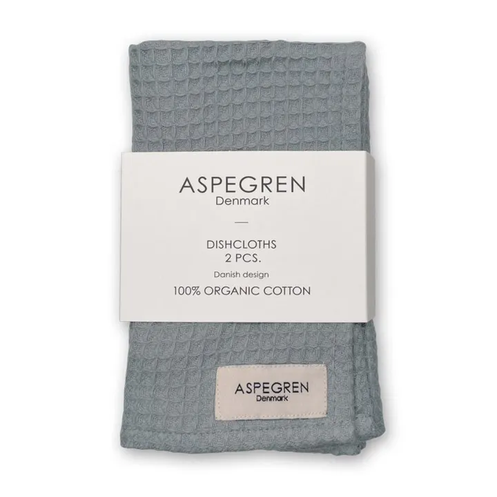 ※ただいま新パッケージに移行中です。写真とパッケージが異なる場合がございます事をご了承ください。 オーガニックコットンのふわふわとしたワッフル地のディッシュクロス。 スモーキーで温かみのある色味で、同色2枚セット商品です。 食器拭きやテーブルふきんとしてはもちろん、お客様がいらした時のお手拭きとしてもおすすめです。 こちらのディッシュクロスにはループが付いていますので、フック等にかければ北欧スタイルキッチンに。 同じシリーズで大判サイズのティータオルもございます。 環境に配慮したAspegrenのディッシュクロスは全て綿100%。プラスチックは使用していません。