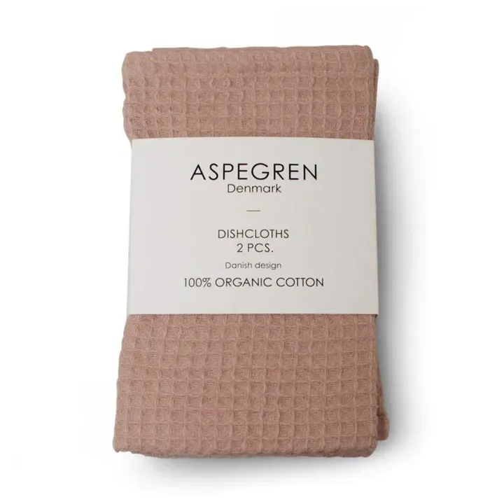 ※ただいま新パッケージに移行中です。写真とパッケージが異なる場合がございます事をご了承ください。 オーガニックコットンのふわふわとしたワッフル地のディッシュクロス。 スモーキーで温かみのある色味で、同色2枚セット商品です。 食器拭きやテーブルふきんとしてはもちろん、お客様がいらした時のお手拭きとしてもおすすめです。 こちらのディッシュクロスにはループが付いていますので、フック等にかければ北欧スタイルキッチンに。 同じシリーズで大判サイズのティータオルもございます。 環境に配慮したAspegrenのディッシュクロスは全て綿100%。プラスチックは使用していません。