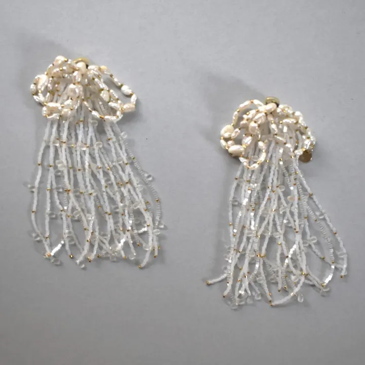 【一合】 昔から日本では 何かあるたびに米や塩を 食べる目的以外のことにも使用してきました 米は五穀の一とされ コムギとともに世界で最も重要な食糧穀物です 一合とは尺貫法における面積・容積の単位で 一升の十分の一を指します 一合のお米があれば 土地神様へのご挨拶もできますし 一日の食事を賄うことも可能です --- ボリュームのある耳飾りは それだけで美しい存在感を放ちます 敢えて選んだ不揃いな淡水真珠が顔まわりを穏やかに彩ってくれます material 淡水真珠、ガラスビーズ、真鍮、テグス *ゴールドビーズは本金メッキ加工を施したものを使用しております *淡水真珠は養殖された淡水貝から取れる無核真珠です。天然素材のため、色・形大きさにばらつきがあり、表面にシワや若干の傷があるものが含まれます。着色はしておらず、素材そのものの天然色です。 size 約40x125㎜ weight 約26.5g *CACICOの商品は全て1点1点制作しているため、個体差があり、商品写真と差がある場合がございます。ご了承の上、ご購入ください。 *金属アレルギーの方はご使用をお控えください