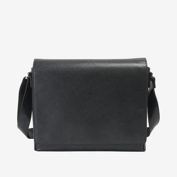 カジュアルに見られがちなショルダーバッグをとことん大人仕様に仕上げたショルダーバッグ。本革で丈夫なサフィアーノが品格と大人の佇まいを感じさせます。A4サイズの書類が入るサイズ感でビジネスシーンでも大活躍。11インチのノートPCがスッポリ入るPCホルダー内臓で持ち運びも安心。また大きめのオープンポケットも2つあり、スマホやパスケースなども整理収納ができます。ショルダーベルトにも本体と同じ本革サフィアーノを使用。けしてチープにならないようにベルト細部までとことんこだわった逸品。ショルダーバッグは子供っぽい、ショルダーバッグはオフの日だけ、というあなたにぜひオススメしたい、本格派、大人のショルダーバッグです。