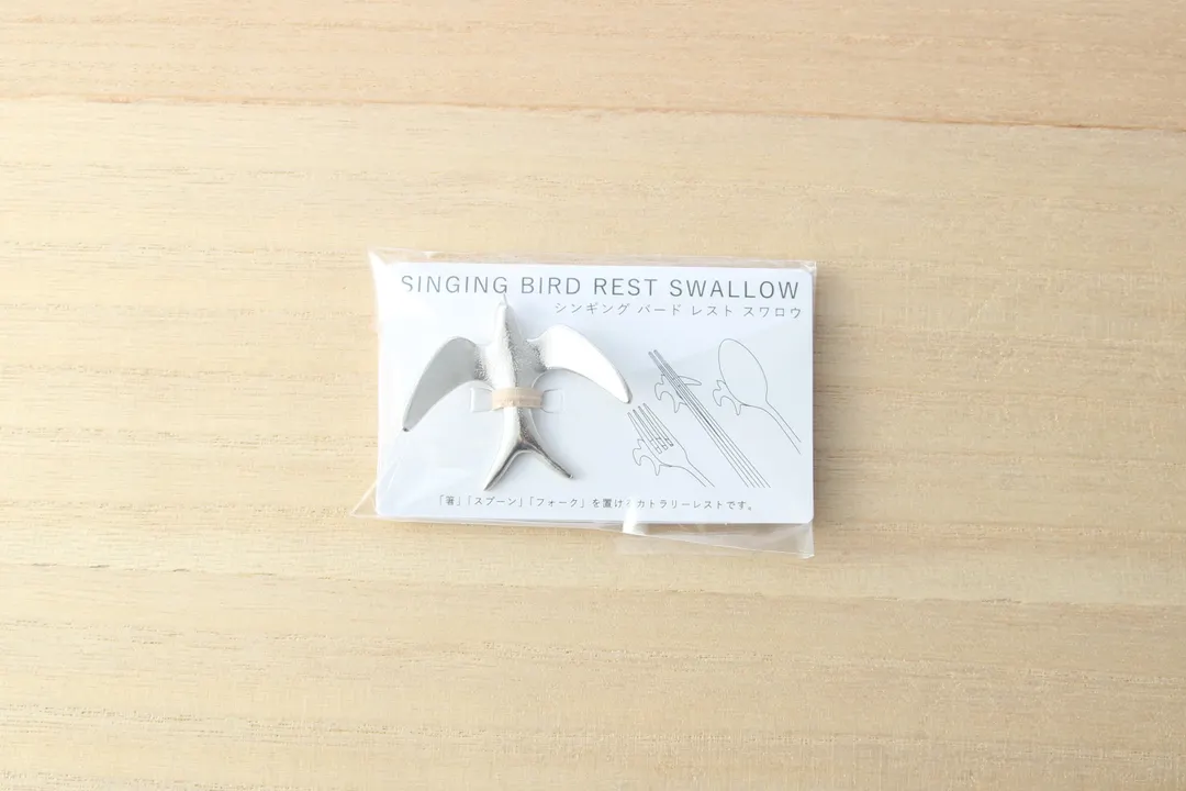 ツバメの形をしたカトラリーレストです。 箸、スプーン、フォークを1つづつ置くことができます。 シルバーカラーで洗練された印象に。 ちょっとしたギフトにもおすすめです。 ゴールドカラーもございます。