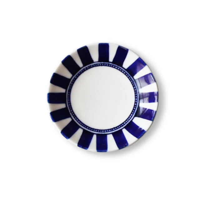 身近にある自然の姿を群青色で表現しました。 和をテーマとした柄ながら、洋も感じるデザインは和洋問わず様々なシーンで活躍してくれるアイテムです。 藍群青(あいぐんじょう) 群れる千鳥や野に咲く草花の姿を器の上に表した藍群青はコバルトの青さにこだわった手描きの豆皿です。 鮮やかな青は食材の色を引き立てるので、どんな料理にもなじむ使いやすさが魅力。 惣菜や香の物も、お茶菓子をのせる器としても重宝します。 九つの柄を揃えて楽しんだり、好きな柄を組み合わせて贈り物にしたり。 山野草と一緒に食卓を彩ってみてはいかがでしょうか。