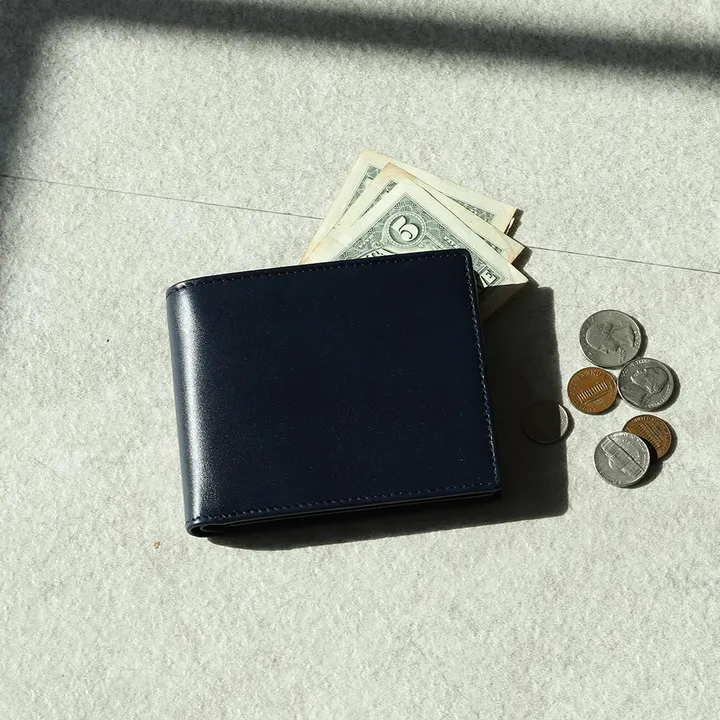 【薄いのにカード12枚収納可】革職人監修 イタリアンレザー 二つ折り財布 / ILW3 ダークネイビー