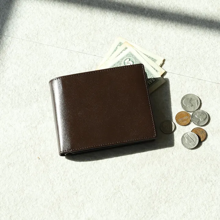 【薄いのにカード12枚収納可】革職人監修 イタリアンレザー 二つ折り財布 / ILW3 ダークブラウン