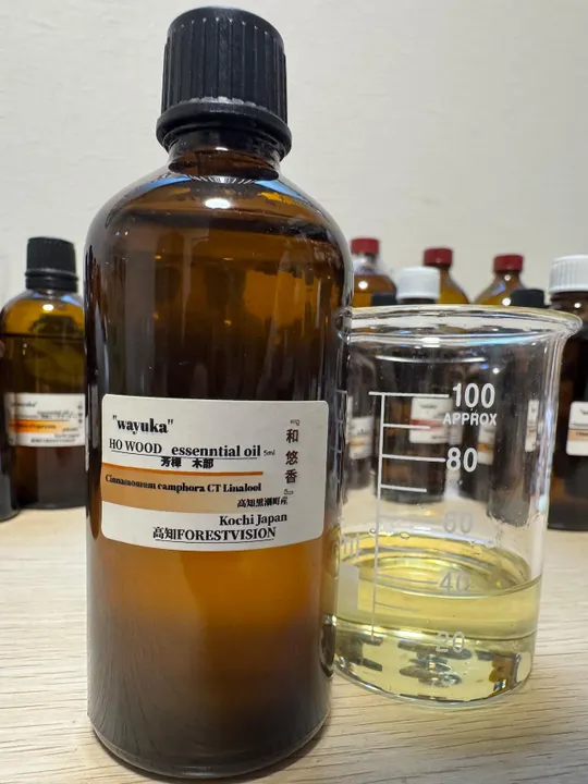 和悠香 黒潮ホーウッド(芳樟 木部)高知黒潮町産 国内 超希少 ホーウッド精油100ml 送料無料 原料 芳樟(ホウショウ) 抽出部位 木部 蒸留法 水蒸気蒸留法 高知黒潮町、60年〜50年前に芳樟油として国内外需要に応じた歴史、当時に植林された樹木が長年の時を経て黒潮町の山林に自生する芳樟から当時の方の導きを経て後世は紡ぐ思いで、復活させる精油です。 国内希少種 精油名 黒潮 ホーウッド(芳樟 木部)高知黒潮町産 学名 Cinnamomum camphora CT Linalool 主な成分 リナロール. リナロールオキサイドE. リナロールオキサイドZ.等 リナロールが90%以上 香り リナロールの特徴的な甘いフローラルを思わる中に成熟したスパイシーを感じる香り。 ローズウッドに似た香りと称されます。 また、国内では、ほとんど採取できない希少種です。 主な効果・効能 ストレス解消や抗菌・抗ウイルス作用が期待されます。
