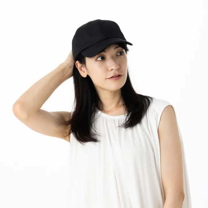 レディース キャップ 再生ポリエステル 麻ライク 帽子 春 夏 ホワイト ベージュ ブラック SN009 ブラック