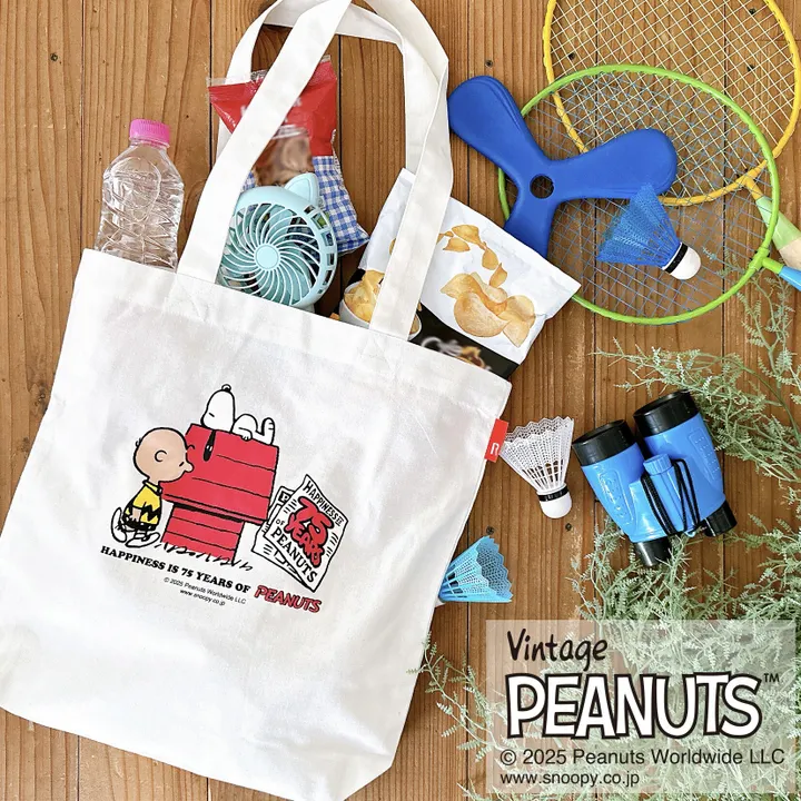 75周年を記念するアートをプリント。 愛らしいスヌーピーと仲間たちのデザインが、気分を高めてくれます。 しなやかな素材は、薄手でありながらしっかりと目が詰まったリサイクルコットン。 もって楽しい、気づけばエコ!を体現できるシリーズです。 オトナも楽しんでいただけるこだわりのデザイン。 シンプルなカタチで、スタイルやファッションを問わず、幅広くご愛用いただけます。 ざっくりと荷物が入れられるベーシックな形状「トール」。 収納力が高いうえ、持ち手は肩にかけて持つのに最適な長さです。 軽くてたっぷり入るので、荷物が多くなりがちなシーンにも大活躍。 A4サイズのファイルもすっぽり入ります。 カバンの中にそっといれておけば、サブバッグとしても活用できます。 裏面のルーポケットは、すぐに取り出したいハンカチやパスケースなどを収納しておけます。 内側にも小物の収納に便利な吊りポケットがついています。