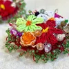 サイズ:約φ4cm フック部分含む最長約6.5cm 色鮮やかなお花のモチーフに様々なビーズなどをちりばめたピアス 耳元で華やかでキュートにお顔周りを彩ります。 トルコの伝統手芸 oya 起源は不明らしいのですが、大昔は 魚を捕る網がすでにその技法だったといわれています。 イスラムの女性たちは髪を隠すためにスカーフを覆います。 はるか昔に使われていたその技法が、イスラムの文化圏でスカーフの縁どりに 装飾されおしゃれを楽しむようになったようです。 オヤはトルコ語で縁飾りを意味します。 技法や手法によって呼び名が変わるそうです。 針を使う技法、かぎ針を使う技法 または、ビーズや石などを編みこんでいる手法など。