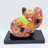 九谷焼伝統技法「盛」で仕上げられた招き猫。盛技法の核心は、緻密な作業による立体感の創出です。職人たちは、特殊な「いっちん」と呼ばれる道具を使用して、粘度の高い絵具を絞り出し、器の表面に盛り上げを作ります。この作業は非常に繊細で、均一な高さと幅を保ちながら進められます。盛り上がった部分にさらに色釉を施したり、削って模様を変化させることで、立体的なデザインに深みを与えます。 右手を挙げた招き猫は「お金」を、左手を挙げた招き猫は「人(お客」を呼び込むと言われ、赤は「病除け」「健康長寿」と言われ黒は「厄除け」と言われており、大変縁起が良い置物とされています。 ご自宅の日用使いにも贈り物にも最適です。