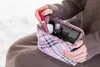 がばっと開くコスメポーチ/撥水加工・西陣織シルク・ファスナーポーチ・マルチチェック・レディース・日本製 アッシュグレー