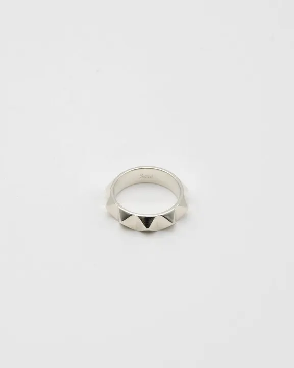 "Studs" series ピラミッド型のスタッズをモチーフとしたリング。 ロックなイメージの強いスタッズですが、上質な素材でクリーンなスタイルにもハマる上品な仕上がりにしました。 1個あるとさりげないアクセントになります。 "3"という数字には、「パワー・創造・成功・繁栄」といった縁起の良い意味があります。