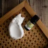 『 ゴロゴロにゃんこと一緒にリラックスタイムを 』 ごろんと寝転がった姿の猫のアロマストーン。 お腹の凹みに精油を滴下すると1日〜数日香り続けます。 リラックスしている猫を見ると、つい気が抜けて顔がほころんでしまいますよね。 1日のなかにそんな瞬間がありますように、と想いを込めました。   【 アロマストーンとは? 】 精油を滴下するだけで香りを楽しめる芳香器。 半径1m程度の空間でふわっと優しく香ります。 電気・火・水を使わないためエコで、 デスクやベッドサイドでも気軽に使うことができます。 お手入れの必要もありません。 香りが充満しないので、 強い香りが苦手な方にもおすすめです。 また、香りは1日〜数日程度で消えてゆきます。 そのため1つのアロマストーンで色々な香りをお楽しみいただけます。 【 SIZE 】 直径9cm×高さ2.7cm 【 DETAIL 】 ごろ〜んと大胆にくつろぐ猫ちゃんのアロマストーン。 ついつい触りたくなるぽってりとしたお腹は、小さなトレイになっています。 精油を垂らすこともできるし、アクセサリーを置いてちょっとしたインテリアオブジェとして楽しむことができます。 見ているとほっこりしてしまうリラックスした猫ちゃんは、ベッドサイドに置いてくつろぎ時間のお供としてもぴったりです。 4色のなかからお好きな毛色をお選びください。 *白猫 *クリーム猫 *グレー猫 *黒猫 ※クリームやグレーは、製作工程上、色ムラができる場合があります。 ひとつひとつ手作業で製作していますので、色の濃淡など仕上がりに若干の差が出ます。 精油を垂らすと跡ができますので、気になる場合は裏側に垂らしてお楽しみください。 【 おすすめの使い方 】 ✔︎ベッドサイドに置いて、就寝前の癒しの時間のお供に ✔︎お気に入りスペースに飾って、香りと共にインテリアオブジェとして ✔︎デスクに置いて、集中したい作業時間のお供に