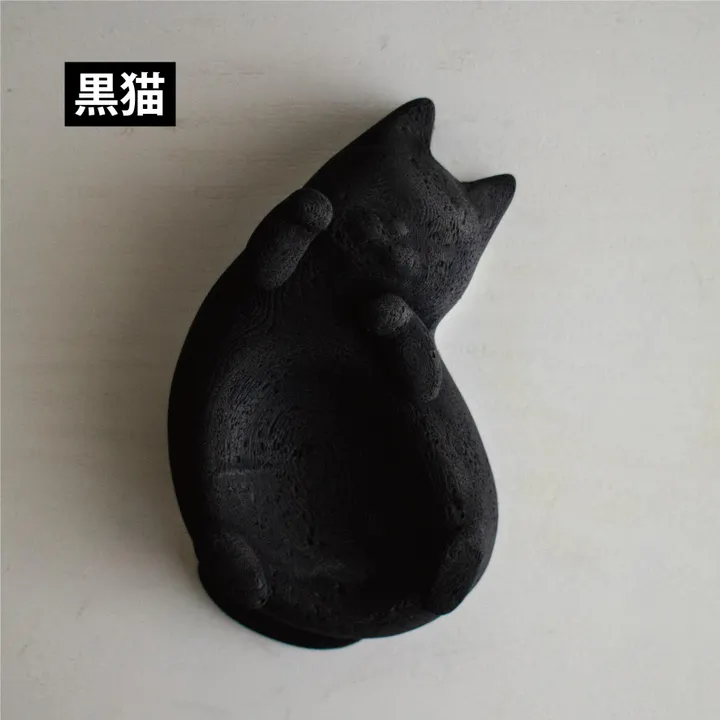 ごろ〜んにゃんこのアロマストーン|猫のお腹がトレイになるミニオブジェ 黒猫