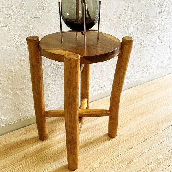 ARチークの根のラウンドサイドテーブル(M 50cm)