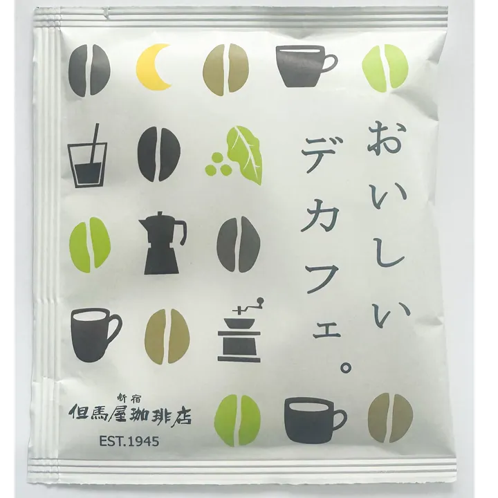 昭和20年に東京 新宿で創業。 但馬屋珈琲店の本格コーヒーをお手軽にお楽しみください。 焼き芋のような甘い香りとカラメルのようなコクのある苦味が特長の、コーヒー本来の味わいを残したおいしいカフェインレスコーヒーです。 おやすみ前や様々なシーンでご利用いただけます。 【簡便性の高い、個包装(1杯タイプ)のドリップバッグコーヒー】 ほっとひと息つきたいときに。 時間のない平日の朝や仕事の合間・旅行先など、時間と場所を選ばずにいつでもお店の本格コーヒーがお楽しみいただけます。