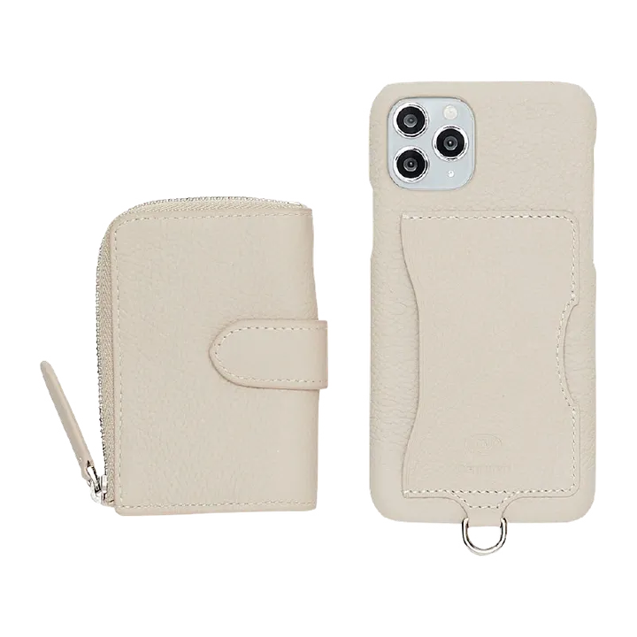 素材は、デミウルーボ の代名詞でもあるフランス産カウレザー。 L字ジップを開けると真ん中にコインスペースがあり、マチが広めで視認性と利便性を兼ね備えています。 コインスペースの両端には、カードや領収書などをドバッと入れることができるポケットがついており、 お札は三つ折り、もしくは4つ折りでしっかり収納できます。カスタムハードケースに装着できるようになっており、 シーンに合わせてスマホと財布をセットで持ち歩くことができます。 装着した状態でもそのままジップが開けられるようになっているので、取り外すことなく使用可能です。 単体としてももちろん、カスタムハードケースとセットでぜひご利用ください。 シンプルなデザインなので男女、年齢関係なくお使いいただけます。プレゼントにも最適です。 <カスタムハードケース> フランス産レザーを使った高級感あふれるレザーハードケース。 カード類を横から入れることができ、 ストラップでぶら下げても落ちないようにサイズ設計されています。 通常のクレジットカードなどは1枚、薄いカードは2枚入れることが可能です。