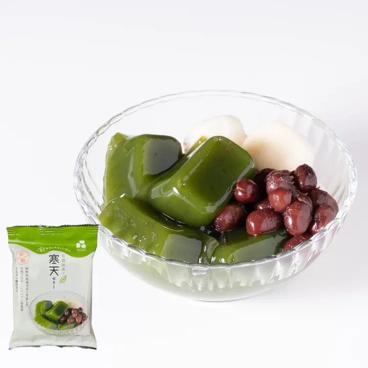 【夏季限定商品 3~9月】 ぷるんとした食感のこんにゃく入寒天ゼリーに京都府産有機宇治抹茶を贅沢に配合しました。 甘さ控えめ、抹茶の香りと程よい渋みを楽しめます。プラントベースでゼラチンやゲル化剤、増粘多糖類不使用です。 北海道産てんさい糖と国産こんにゃく粉・寒天・甘藷澱粉を加え、添加物などを使用せずに固めています。 レトルト殺菌のため常温販売が可能です。 京都府内でも高級宇治茶の産地として知られ、抹茶原材料の碾茶生産量トップクラスの和束町で有機栽培された中井製茶場の有機宇治抹茶を使用。 中井製茶場は1980年代から有機栽培を開始した有機茶のパイオニアです。 従来製品では抹茶の変色等課題がありましたが、有機抹茶ペーストを併用することによりレトルト加熱でも変色することなく、綺麗な緑色を実現しました。 製氷トレーのような容器に入っており、フィルムを剥がしてつまようじ等を使ってお召し上がりください。 〈売場提案〉 省スペースでレジ前・横などへの陳列による、ついで買いで客単価UPが見込めます。 お菓子コーナーのほか、平台やかご盛り、冷蔵ショーケースでの陳列もおすすめです。 涼味菓子フェア・京都フェア・抹茶フェア・和菓子フェア 京都府産有機宇治茶や「余計なものは入れない・加えない」をコンセプトに美味しく、無添加の菓子等を企画・販売する有限会社アトレが企画しました。 夏季限定の涼味菓子は、寒天ゼリーは宇治抹茶・ほうじ茶の2種、京のくず餅(抹茶みつ付)をご用意しております。