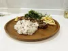 無垢チーク材の丸皿の直径30cmの大皿が入荷しました☆ 安心の天然素材で作られた丈夫な食器になります! チーク材は古来より、高級家具や、ヨットなどの船舶の甲板材などで重宝された、水にも強く、耐久性の高い素材になります。 天然の木材の温かみたっぷりで、使い心地や手触り、使い込んだ手への馴染みも良く、末永くご愛用して頂けます。 ウレタンやラッカー塗装はしておらず、オリーブオイル仕上げになっておりますので、体にも優しく、自然の艶で高級感があります。 量産品とは違う、手にして頂いた時の手触りの違いにご満足いただけると思います! ご家庭のキッチンではもちろん、キャンプやアウトドアにも最適な一品です☆ チーク材の独特な香りがする場合がございますが、洗浄して頂き、自然乾燥していただければ徐々に無くなります。 自然木の木目の美しさを実感して頂けるお品です! サイズ:幅30cm 奥行30m 高さ2cm 材質:無垢チーク材・オイル仕上げ 最善の注意を払っておりますが、ナチュラル素材でハンドメイドの為、色合い、大きさ等、多少異なる場合がございますが、ご了承くださいませ。